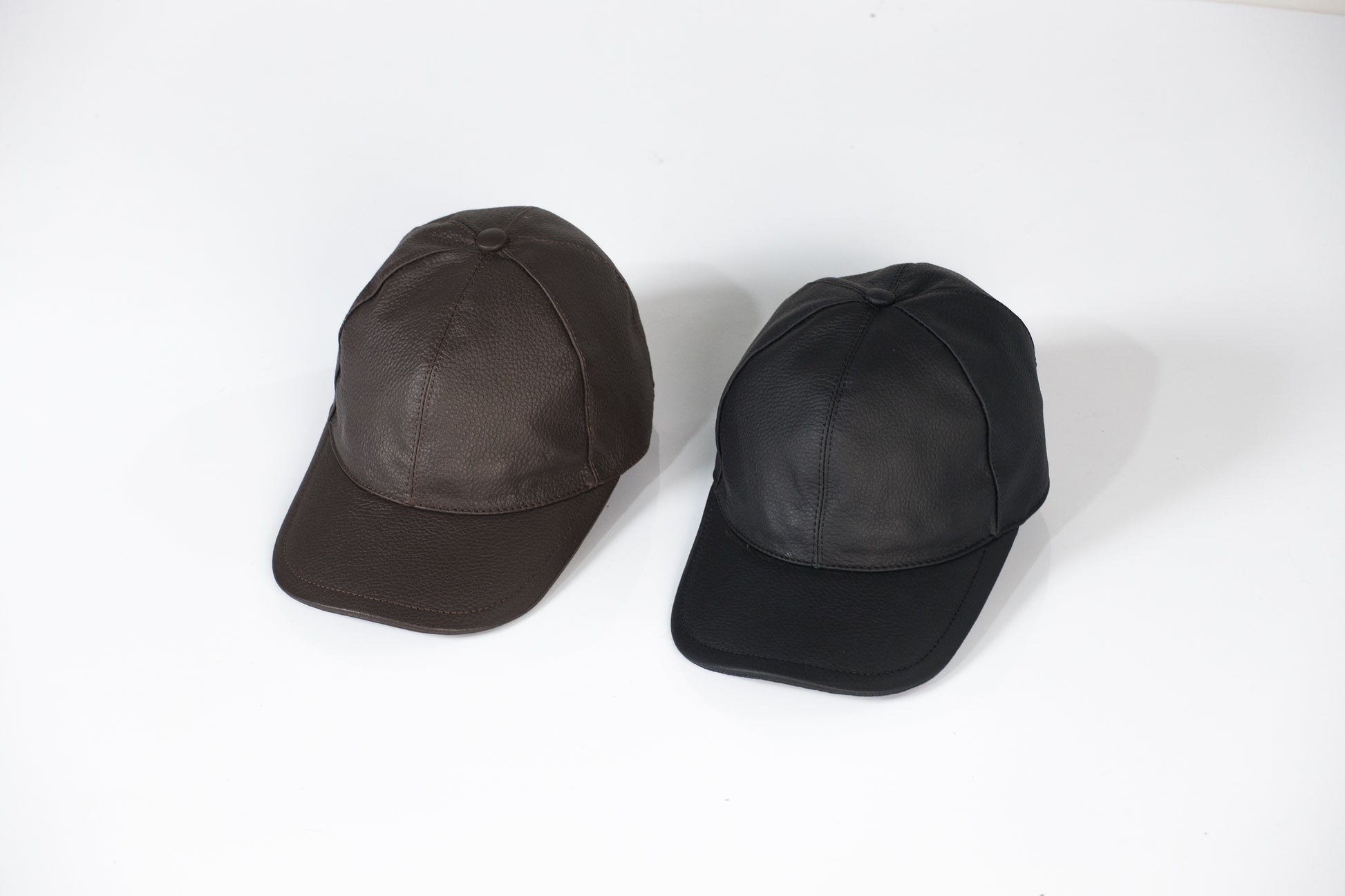 Disponibles en negro y café, estas gorras ofrecen un acabado impecable que resalta la textura natural del cuero y la calidad artesanal de cada pieza.